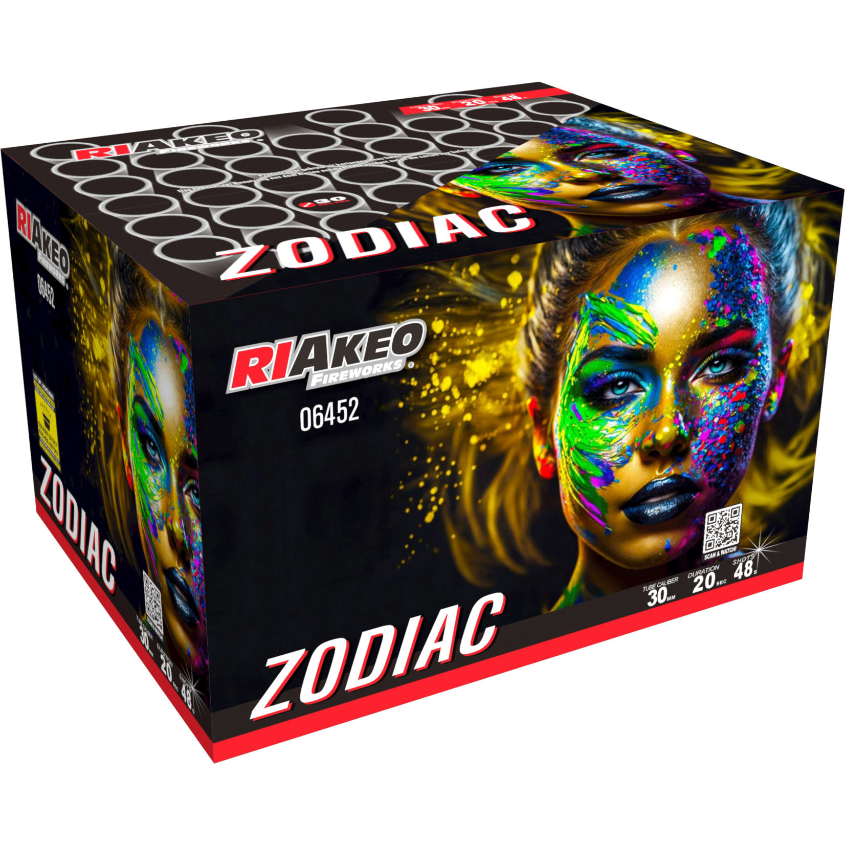 Maximales Kaliber, maximal gefüllt = maximales Feuerwerkserlebnis! Zodiac – 48 Schuss! Gold Crown Tails zu Willow mit atemberaubend schönen Neon-Ejects, alles in V-Shape.