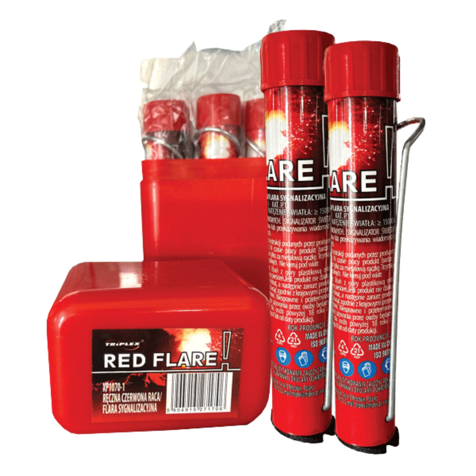 Rote Signalrakete mit sicherem Metallgriff, Seefackel für Notfälle.