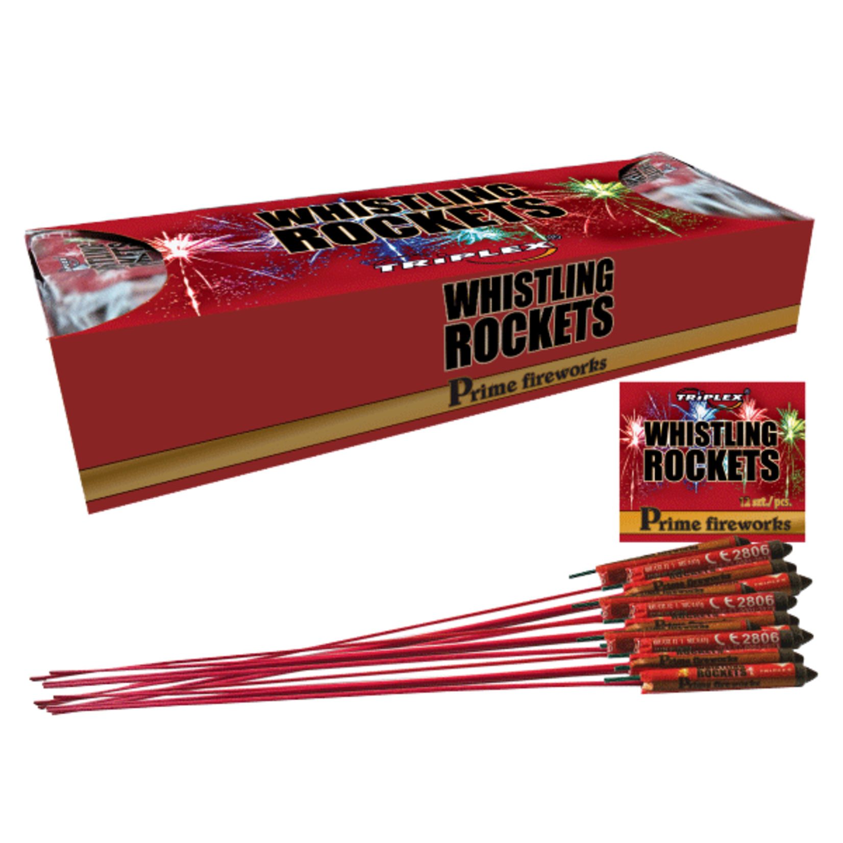 144 Feuerwerksraketen von Triplex mit Pfeifeffekt und lautem Knall.